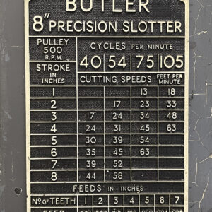Make : Butler Model : 8″ Precision Slotter Number : 8″ Precision Slotter